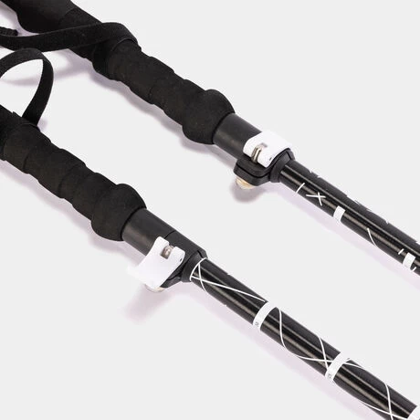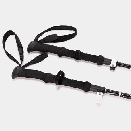 Set de 2 bastones de outdoor. Proporcionan estabilidad extra en cualquier terreno. Están fabricados en aluminio ligero y tienen mango ergonómico acolchado para mayor comodidad. Cuenta con una cinta de agarre para las muñecas que evita perder el bastón.