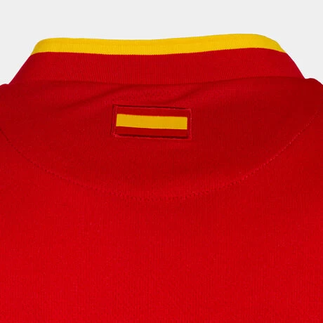 En cuanto al tejido, la elástica se ha fabricado 100% con poliéster reciclado para reducir al mínimo el impacto en el medioambiente. Se trata de una tela ecológica con un elegante acabado en Jacquard, que añade pequeños dibujos y le da un extra de transpirabilidad. Incorpora cuello redondo y puños en rib con el fin de conseguir un ajuste más cómodo y patrón regular. Se ha incluido la tecnología MICRO-MESH SYSTEM en las axilas y los costados, las zonas donde más se acumula el sudor. Así, se evaporará rápidamente y el cuerpo del jugador permanecerá seco incluso en los momentos de más rendimiento. Cada pieza se ha unido usando el sistema FLATLOCK de costuras planas, que evita rozaduras y aporta elasticidad y libertad de movimientos.