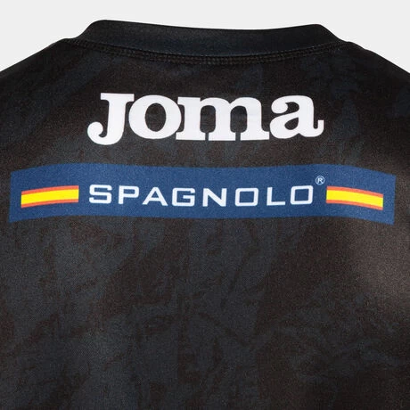 Destaca su diseño en color negro combinado con detalles de la bandera española en mangas y bajo.