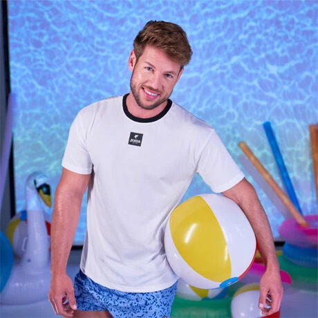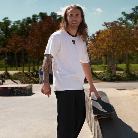 Camiseta oversize de manga corta con rib en cuello y hombro caído.