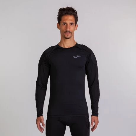 Camiseta de portero diseñada con cuello redondo que incluye protecciones en los codos y hombros para absorber los impactos sin reducir la movilidad. Logo serigrafiado.