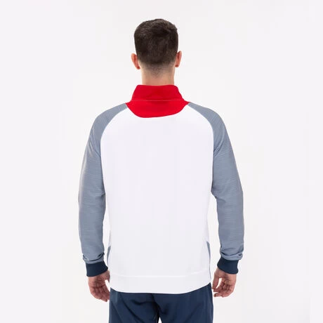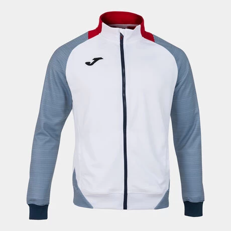 La chaqueta incorpora cierre con cremallera completa y cuello alto para abrigar la zona. Posee bolsillos seguros con cremallera para guardar pequeños objetos como el móvil o las llaves. Cuenta con bajo y puños en rib que estilizan la prenda y además aseguran un ajuste cómodo que evita la entrada de frío. Por otro lado, las mangas son tipo raglán, Este tipo de manga más flexible permite que el futbolista encadene movimientos de forma cómoda.