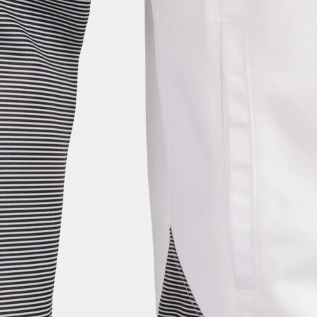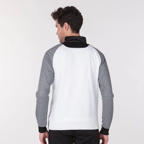 La chaqueta incorpora cierre con cremallera completa y cuello alto para abrigar la zona. Posee bolsillos seguros con cremallera para guardar pequeños objetos como el móvil o las llaves. Cuenta con bajo y puños en rib que estilizan la prenda y además aseguran un ajuste cómodo que evita la entrada de frío. Por otro lado, las mangas son tipo raglán, Este tipo de manga más flexible permite que el futbolista encadene movimientos de forma cómoda.