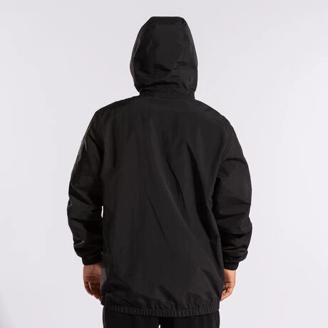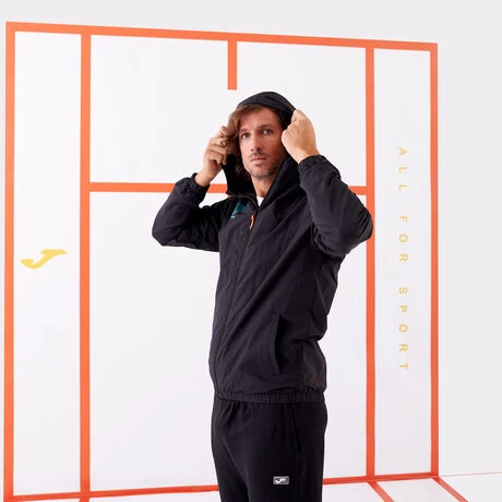 Chaqueta ligera de hombre de estilo casual. Incluye capucha ajustable mediante cordones elásticos y stoppers. También cuenta con dos bolsillos frontales sin cremallera y con elástico en puños y bajo para un ajuste más cómodo. De esta manera, el aislamiento contra el frío será mayor. La chaqueta está fabricada con tejido ligero y resistente. El interior de la chaqueta y la capucha está confeccionado con tejido mesh que ayuda a la transpiración del sudor.