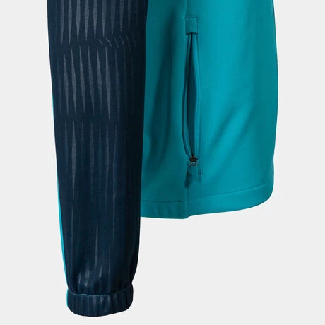 Esta sudadera cuenta con cierre de cremallera completa protegida en la parte superior mediante una pequeña solapa de textil. De esta manera, no provoca molestias en la piel durante el juego. Por otro lado, incluye cuello alto en rib interior para ajustarse cómodamente y proteger así la zona del frío. En los puños y en el bajo se ha añadido elástico para no dejar entrar el frío ni salir el calor. Presenta también dos bolsillos frontales con cierre de cremallera. En ellos, el tenista podrá guardar y transportar pequeños objetos personales, como el móvil o las llaves, sin preocuparse por perderlos.