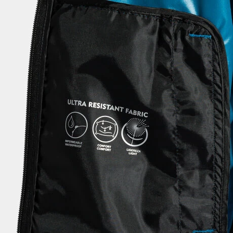 Este chubasquero está fabricado con tejido impermeable muy resistente y ligero, lo que hace que el deportista disfrute del máximo confort.