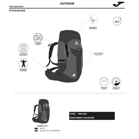 Mochila de outdoor pensada para recorrer largas distancias. Presenta una alta capacidad de almacenamiento con un compartimento amplio, bolsillos frontales y múltiples bolsillos más pequeños en los laterales con cremallera y bandas elásticas. Así se podrá tener las cosas organizadas. También incorpora correas muy resistentes con hebilla de fácil liberación, que hacen que el contenido vaya más compacto.