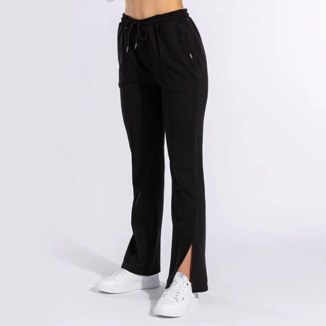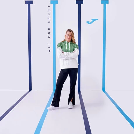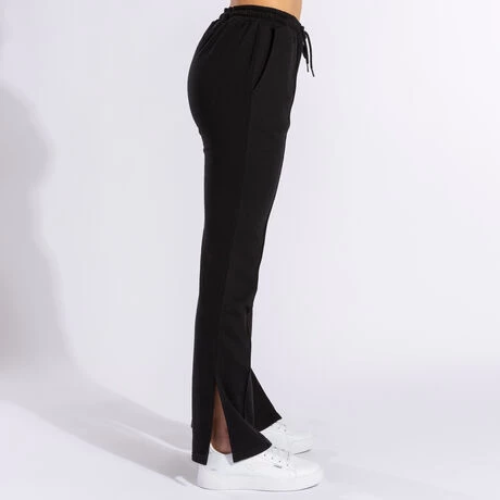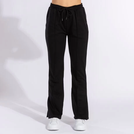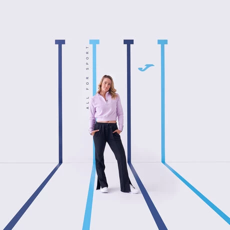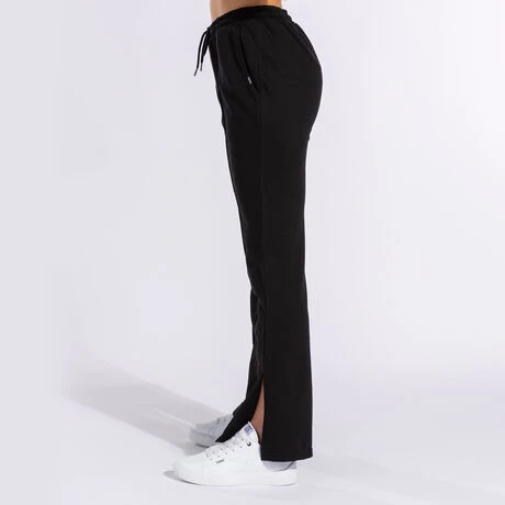 Pantalón largo de mujer de estilo casual. Están fabricados con algodón y tejido fleece, lo que aporta suavidad, calidez y confort a la deportista. Se ajustan en la cintura gracias a una banda elástica con cordón. Incluyen dos bolsillos clásicos a los laterales.