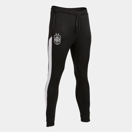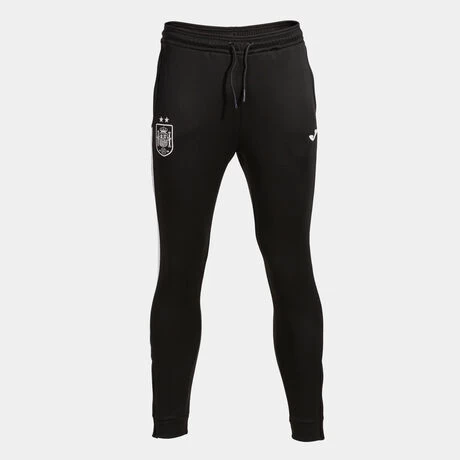 Pantalón largo de hombre de la Real Federación Española de Fútbol Sala confeccionado en poliéster con el interior en fleece para mantener el calor corporal y maximizar el confort. Incorpora bolsillos, rib en los laterales y cintura elástica con cordón.
