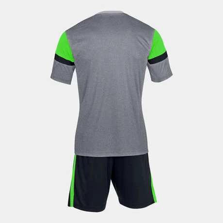 Set de dos piezas compuesto por camiseta de manga corta y short con cintura elástica ajustable mediante cordón.