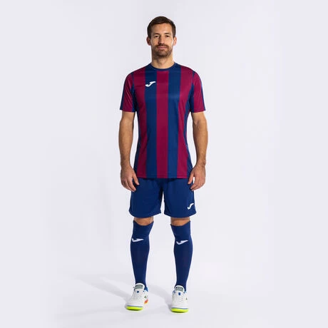 Ambas piezas se han confeccionado con tejido ligero, cómodo y resistente. Además, es transpirable. Su sistema de evacuación del sudor mantendrá fresco y seco el cuerpo del futbolista en todo momento para que maximice su rendimiento. Destaca su diseño clásico futbolero, con camiseta sublimada a rayas verticales en dos colores y short básico monocolor a conjunto. Logotipo Joma en printing en ambas prendas.