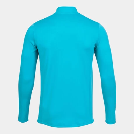 La sudadera incorpora media cremallera con tirador, protegida mediante una pequeña pieza de textil y elástico en los puños para un ajuste más cómodo y mejor aislamiento contra el frío. Además, es ligeramente más larga por la parte trasera.