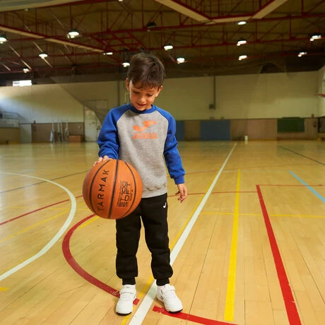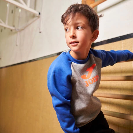 Sudadera casual de niño. Está confeccionada con fleece interior, un tejido que proporciona calidez al pequeño deportista y que permite que se mantenga su temperatura corporal. Las mangas son tipo raglán para facilitar la libertad de movimientos. Además, incorpora tejido rib en el cuello, los puños y el bajo para conseguir un ajuste más cómodo.