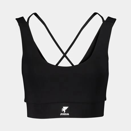 Sujetador deportivo de mujer. Está confeccionado en tejido transpirable y elástico, que se adapta al cuerpo de la deportista y le proporciona confort. Además, no se trasparenta. Este top presenta una sujeción al pecho media.