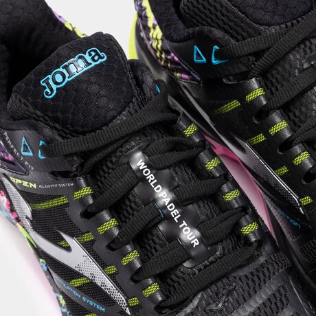 Zapatillas específicas de pádel, diseñadas para alta competición y entrenamiento. Se caracterizan por ser la combinación perfecta entre estabilidad, reactividad y amortiguación. Esta zapatilla es ideal para aquellos tenistas profesionales de peso medio-alto que quieren mejorar su experiencia en pista. Cuentan con horma ancha más cómoda.